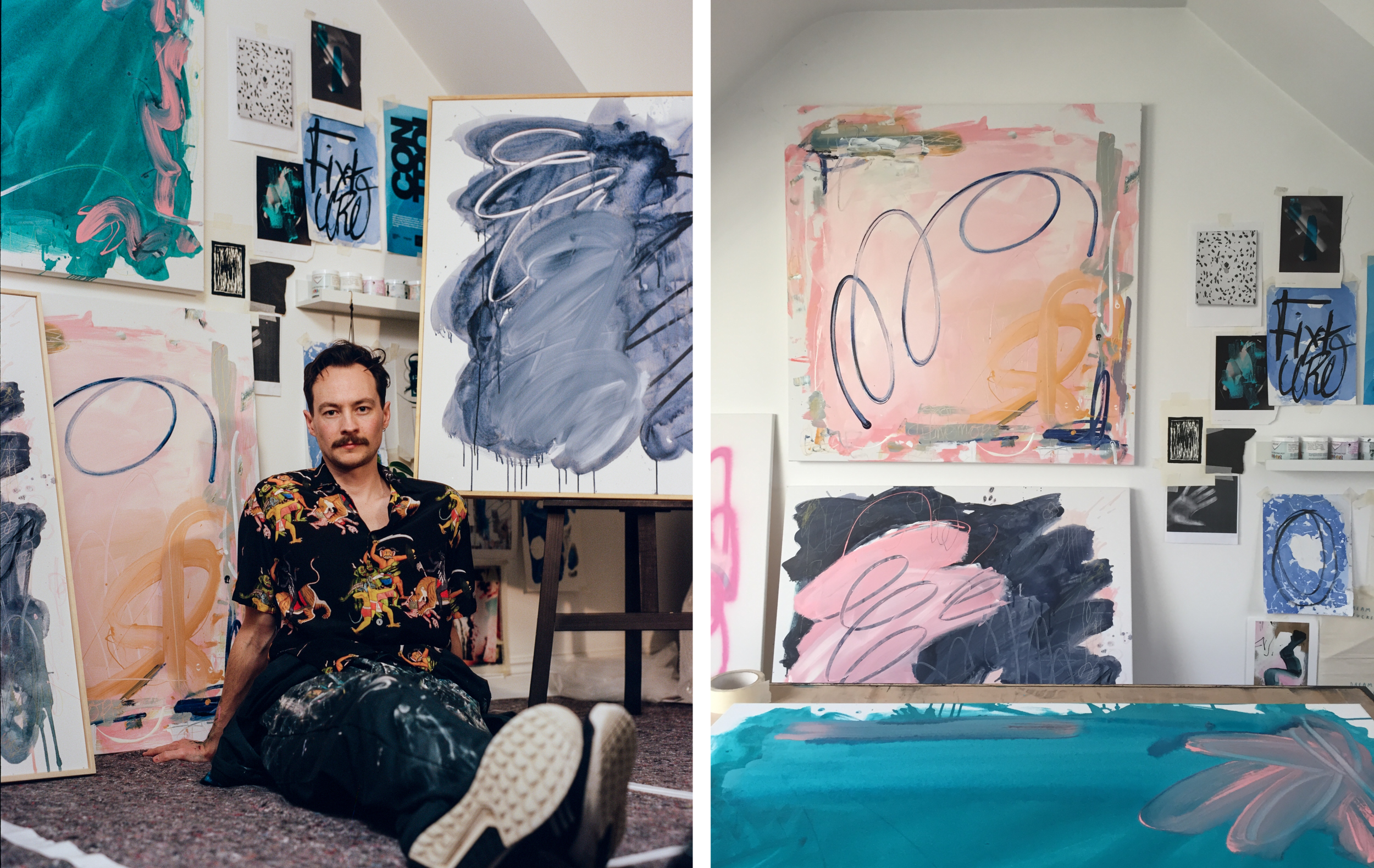 I use a large range of materials, and recently I have started to use spray paint as a way to not be so calculated. I was born in the suburbs and I love how graffiti is so uncontrollably uninhibited, and it suits my style of creating as spray paint dries quickly. I never want my work to just be considered pretty, the most important thing for me is to portray emotion. My work is layered over and over again, allowing the final result to grow from what is hiding underneath. I consider it a method where mistakes are allowed to open up for a new approach to be revealed. I do sometimes name my work but I often like to leave it open for interpretation. I like that my art can mean different things to different people. It encourages me to continue on this journey, where every day leads to a new road, and I am excited to continue on this way.”