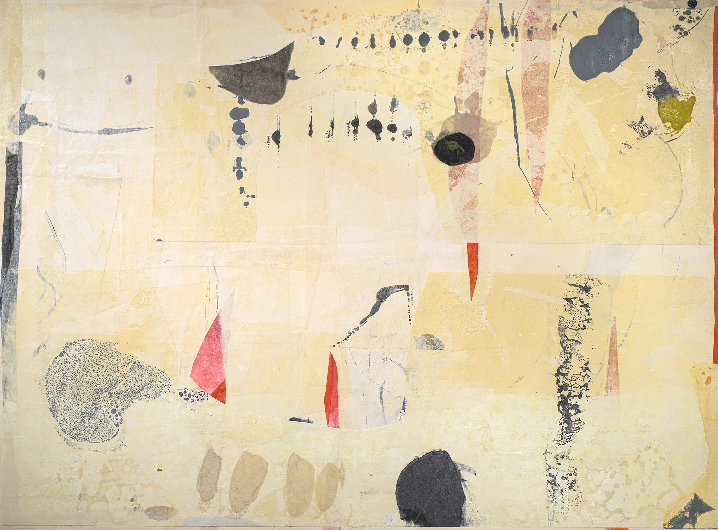 In 1998 I was introduced to encaustic and it was an instant love affair that continues to sustain my studio practice. Encaustic is heated beeswax to which pigments are added to create a translucent and luminous surface. It is applied to a rigid substrate like a wood panel. I also use encaustic painted on a hotbox to make monotypes on paper. This allows me to work quickly and not overthink the process. Learning to trust myself to be in the moment, reacting without controlling the outcome has been challenging, but yields my strongest work. I just finished a project this month where I created thirty drawings using encaustic and ink, selling them on Instagram to raise money for the Food Bank of Monterey County. I made one a day and set parameters on time spent, palette and size which meant I couldn't overwork. I'm really pleased with most of the drawings because of their freshness and spontaneity.